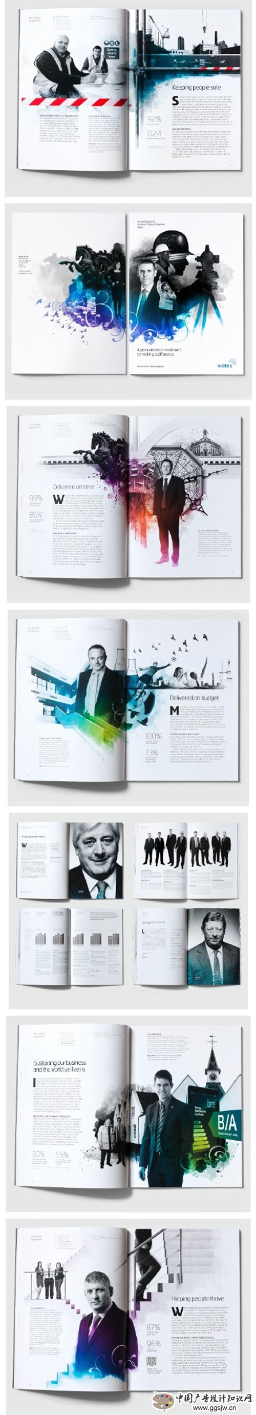 ③强化整体布局,强化整体布局即将版面上各种编排要素(图与图、图与文字)在编排结构及色彩上作整体设计。设计者需要注意以下三点:一是加强整体的结构组织和方向的视觉秩序;二是加强文案的集合性,将文案中多种信息组合成块状,使版面具有条理性;三是加强展开页的整体性。对于连页或展开页,设计师不可设计完左页再考虑右页,否则,将造成松散、各自为营的状态,从而破坏了版面的整体性。
