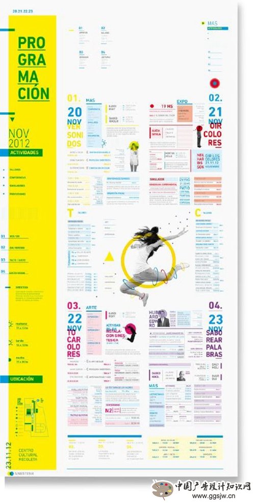 ③文案的图形编排,文字是版式设计的主要部分。一般的版面,文字都是两边对齐的排列在页面中,即使添加了图片,编排方式也基本一样,这样的编排使版面缺乏艺术感。而把文字的图形化编排就打破了这种古板,增强版面视觉冲击力,更好的使读者体会设计者的观点和意图。 推荐阅读:版式设计技巧!图文处理技法